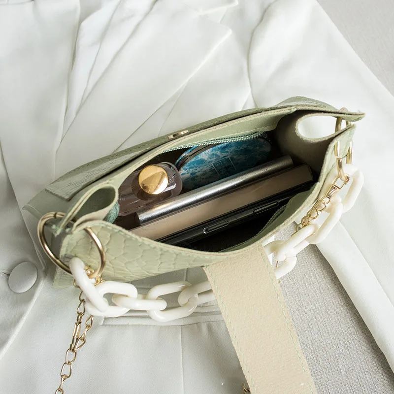 Designed with your convenience in mind, each bag features a spacious main pocket and a handy front pocket for easy access to your essentials. Plus, the adjustable long shoulder strap ensures a comfortable fit, allowing you to wear it in style whether you’re headed to brunch or a night out.